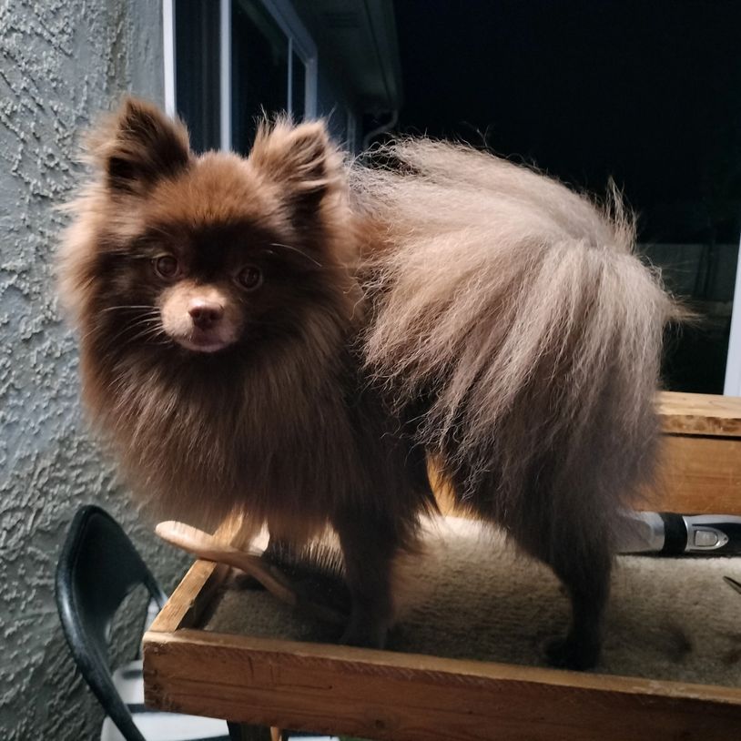 Miso is our very handsome chocolate boy. He is the Velcro pom who just wants to be with mom and dad all the time. He will do anything for a banana! Miso is genetically tested and AKC registered